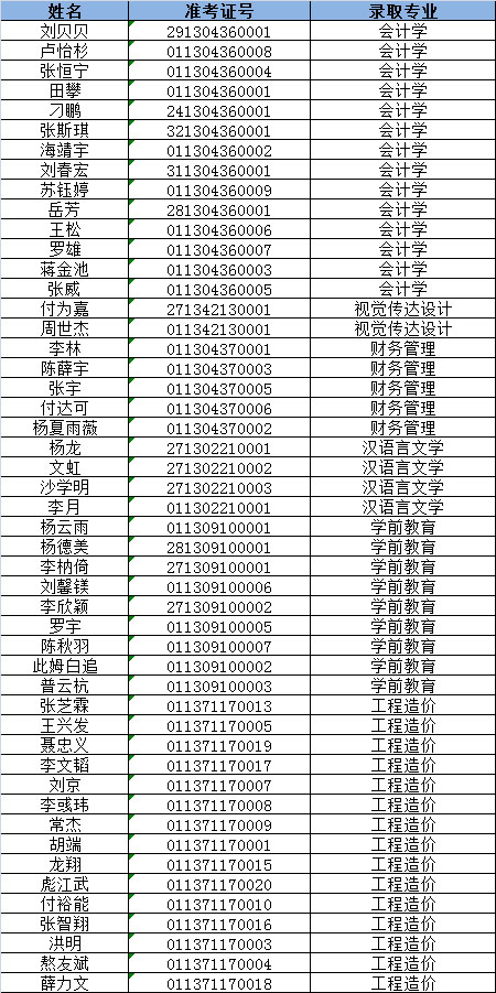2017年專升本免試招收職業(yè)院校技能拔尖畢業(yè)生錄取名單