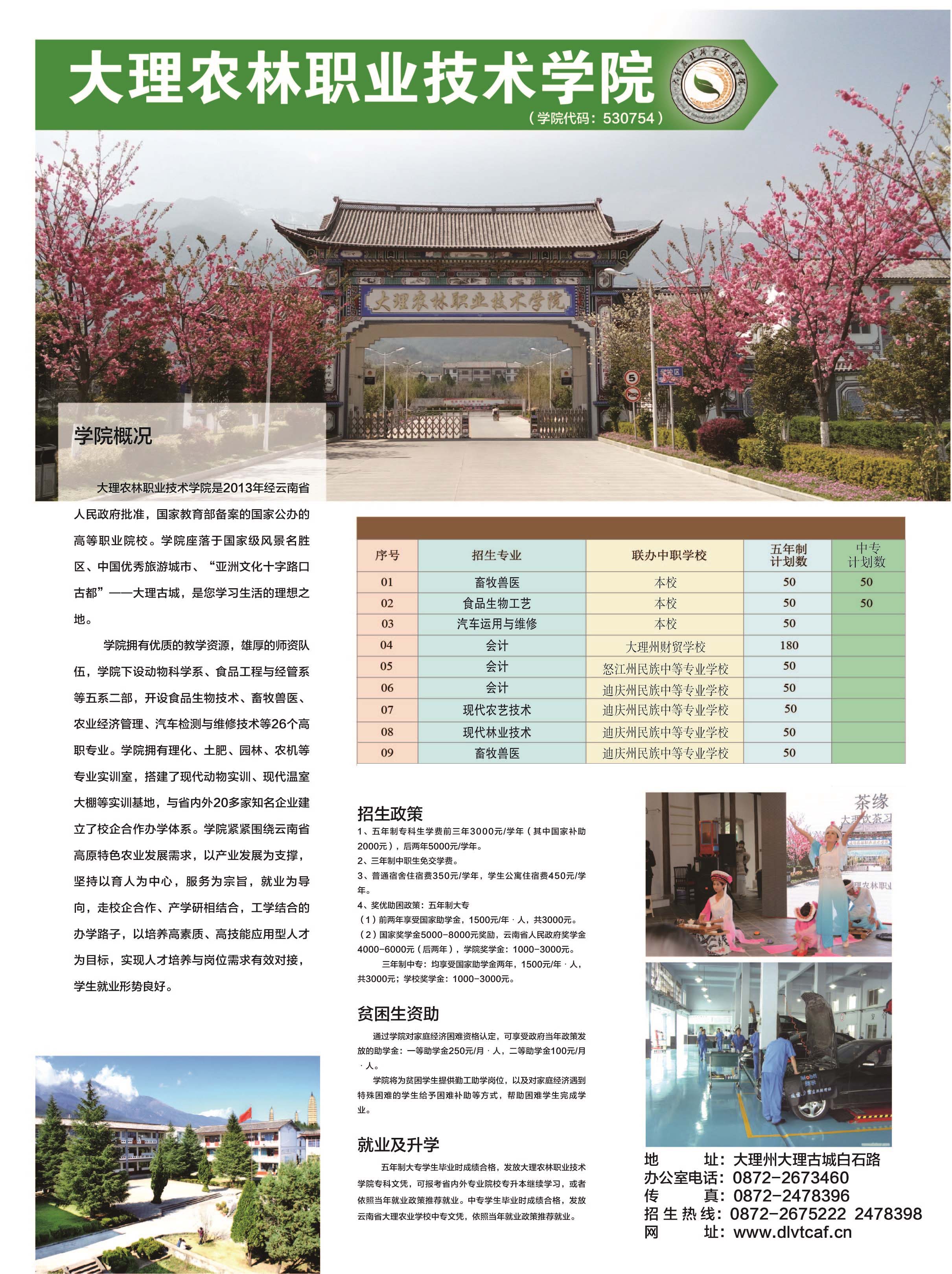 大理農(nóng)林職業(yè)技術(shù)學(xué)院2017年五年制大專招生簡(jiǎn)章