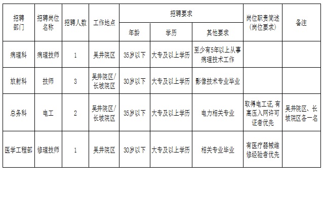 考試方式:病理、放射技師參加筆試、面試及臨床實踐;電工、修理技師參加面試及實踐操作。