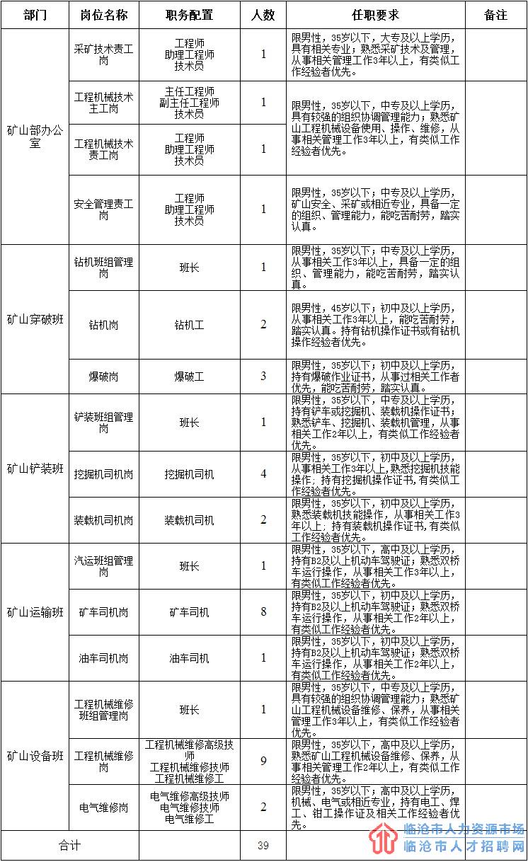 為滿足公司礦山自主經(jīng)營生產(chǎn)用人需求,經(jīng)云南水泥建材集團(tuán)有限公司批準(zhǔn),決定向集團(tuán)內(nèi)部和社會公開招聘員工,現(xiàn)將具體招聘事項(xiàng)公告如下: