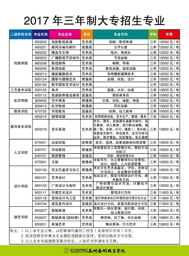昆明藝術(shù)職業(yè)學院2019年三年制大專招