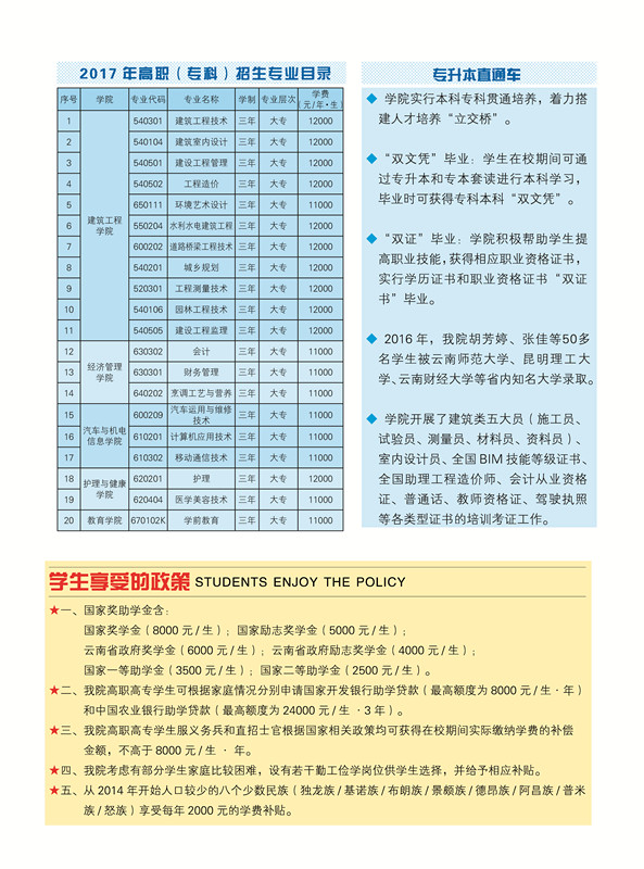 云南城市建設(shè)職業(yè)學(xué)院2017年招生高職(專科)簡章