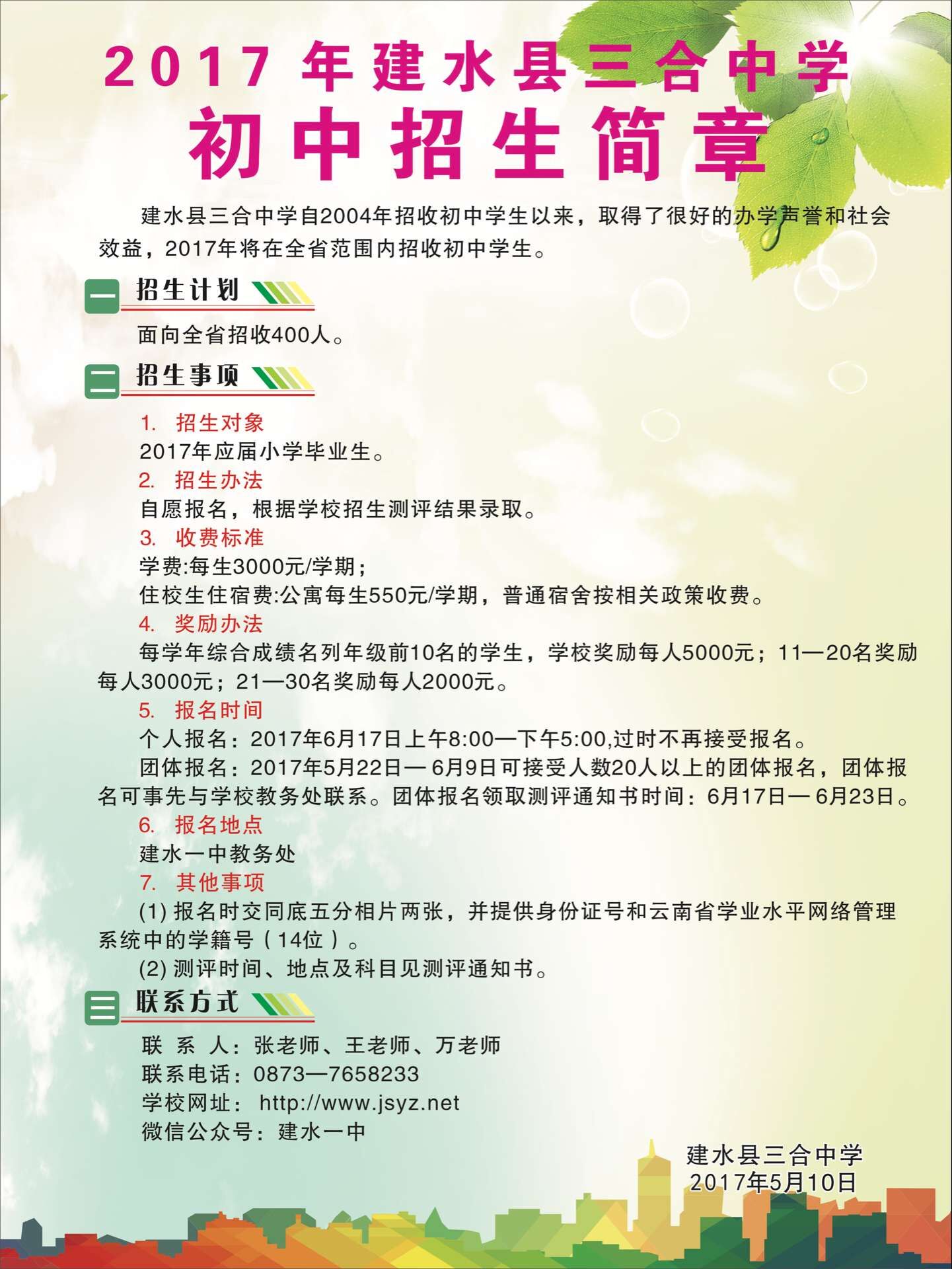 2017年紅河州建水縣三合中學(xué)初中招生簡章
