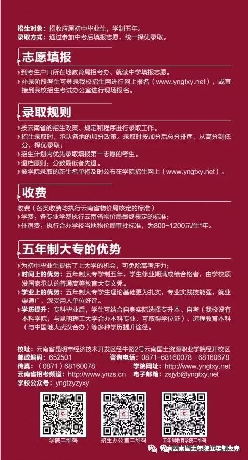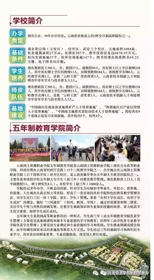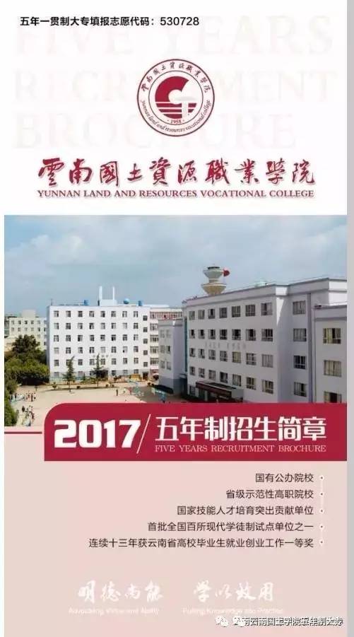 云南國土資源職業(yè)學(xué)院2017年五年一貫制大專招生簡章