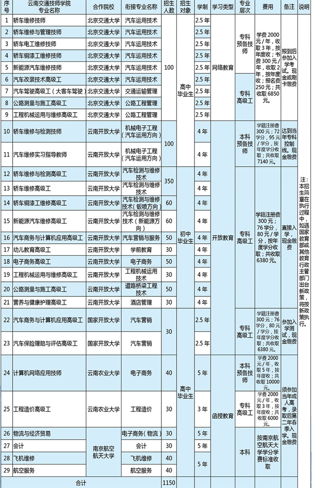 云南交通技師學(xué)院2017年繼續(xù)教育專(zhuān)、本科招生計(jì)劃表