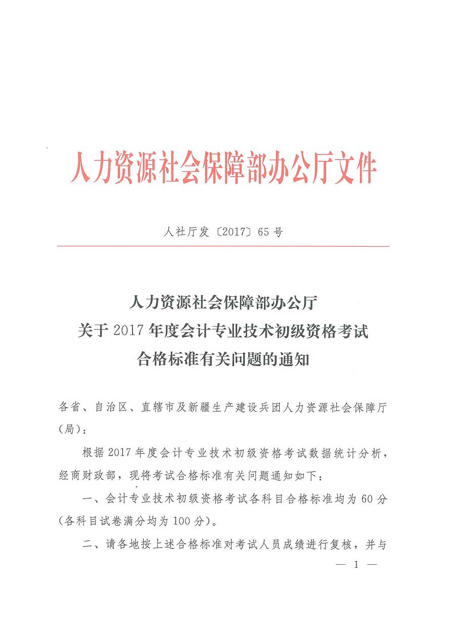 2017年度會(huì)計(jì)專(zhuān)業(yè)技術(shù)初級(jí)資格考試合格標(biāo)準(zhǔn)通知