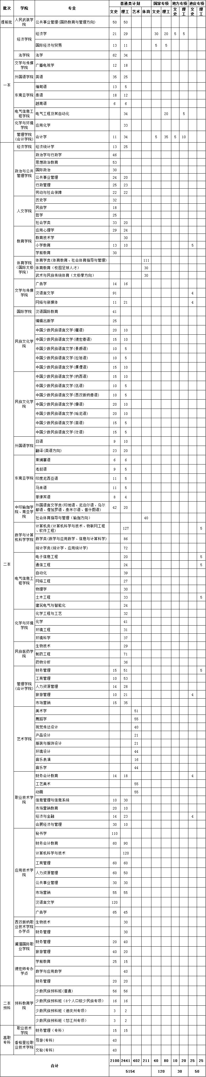 2022年云南省少數(shù)民族預(yù)科升學(xué)計劃表