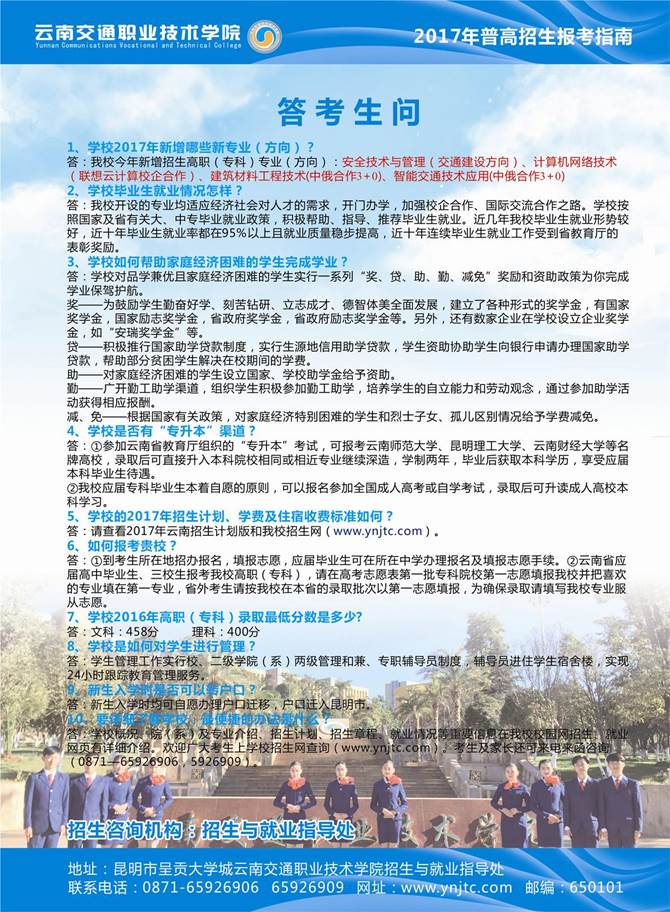 云南交通職業(yè)技術(shù)學(xué)院2017年招生報考指南