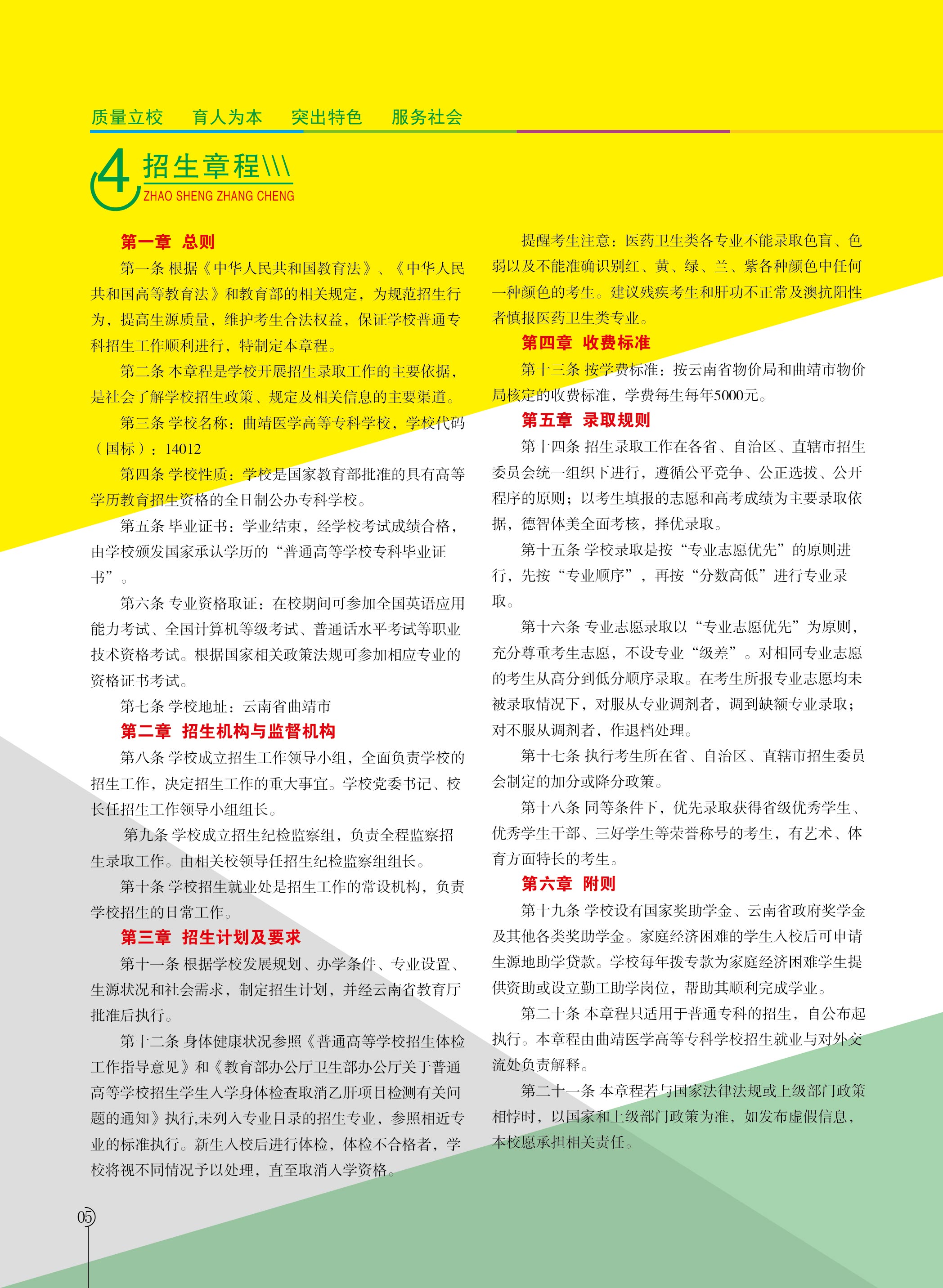 2023年曲靖醫(yī)學(xué)高等??茖W(xué)校招生章程