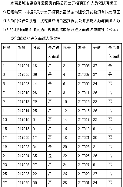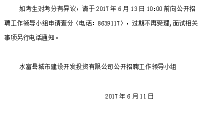 水富縣城市建設(shè)開發(fā)投資有限公司 工作人員筆試成績公示