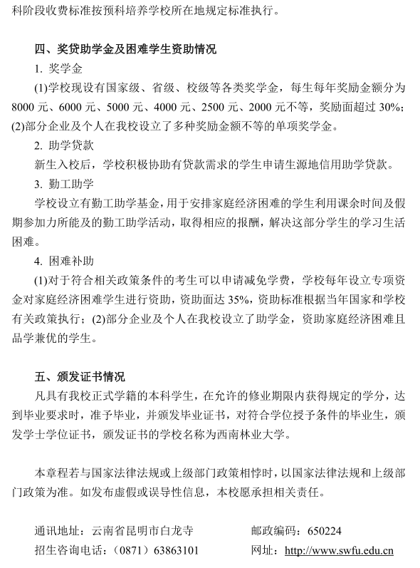 2025年西南林業(yè)大學(xué)普通本科招生章程