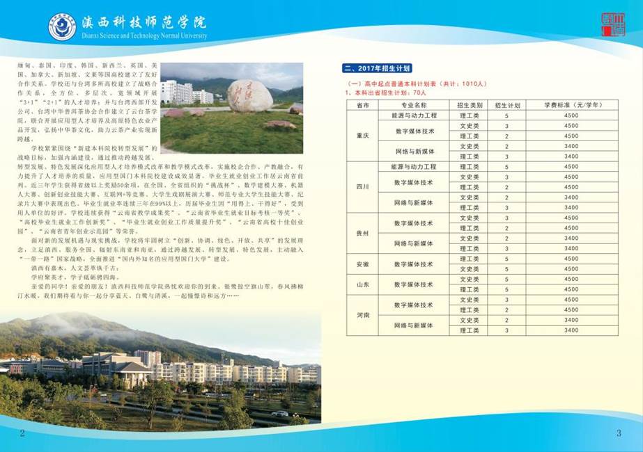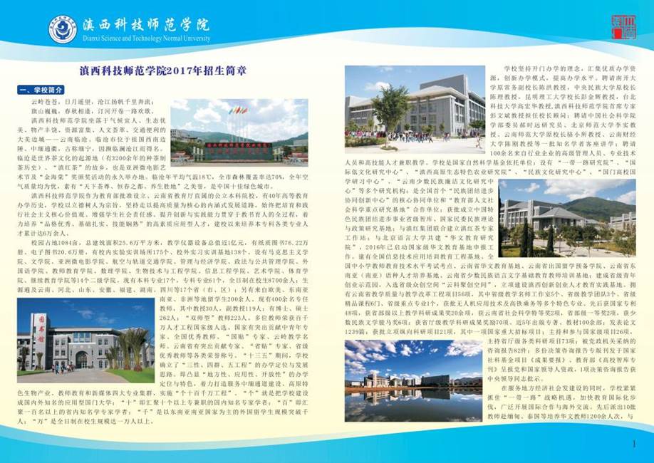 滇西科技師范學(xué)院2017年招生簡(jiǎn)章