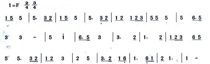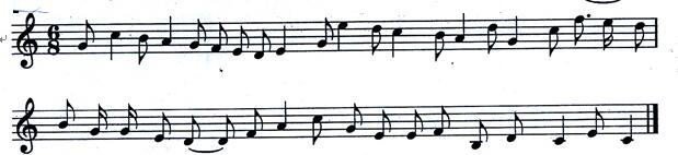 37.將以下曲調(diào)移高小二度、并重新記譜(要求寫出新調(diào)調(diào)號(hào))。