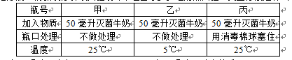 2. 下表為探究食品腐敗原因和細(xì)菌生存條件的實(shí)驗(yàn)設(shè)計(jì),甲、乙、丙為三個(gè)相同的已消毒的錐形瓶。請據(jù)表分析該實(shí)驗(yàn)設(shè)計(jì)中包含了多少組對照試驗(yàn)?變量分別是什么?