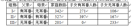 (4)在第Ⅰ組中的一對夫婦,第1個(gè)孩子無耳垂,該夫婦再生一個(gè)孩子無耳垂的幾率是 。