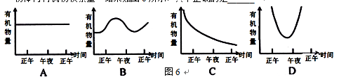 (2)如果在相對封閉的溫室中,某植物的葉片受到陽光的照射而生長,一晝夜后測定植物體內(nèi)有機(jī)物積累量。結(jié)果如圖6所示,其中正確的是______。