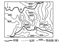(2) 現(xiàn)擬在①、②、③、④四地中選址布局一個大型批發(fā)市場,最佳選址是 地;從環(huán)境角度考慮,化學工業(yè)布局在甲處的合理性體現(xiàn)在 、 等。