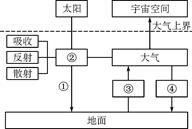 全球氣候變化引起國際社會的普遍關注,圖8為大氣受熱過程示意圖。讀圖回答第22~23小題。