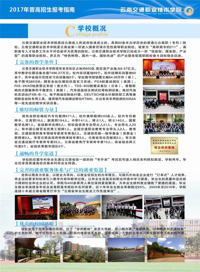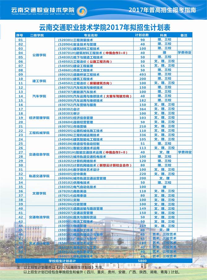 云南交通職業(yè)技術(shù)學(xué)院2017年招生報(bào)考指南(招生計(jì)劃)