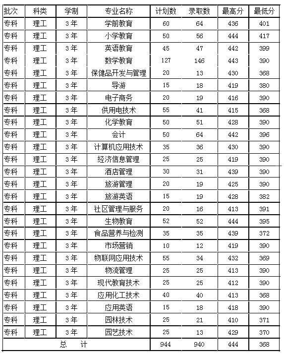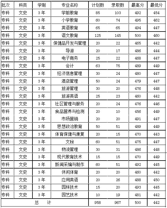 五年制大專 | 5年 | 學(xué)前教育 | 50 | 100 | 482 | 370 |