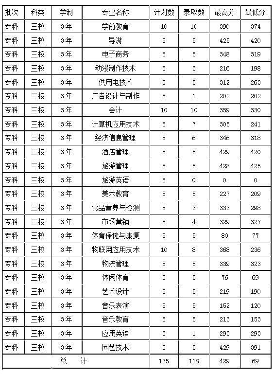 五年制大專 | 5年 | 旅游服務(wù)與管理 | 50 | 37 | 533 | 361 |