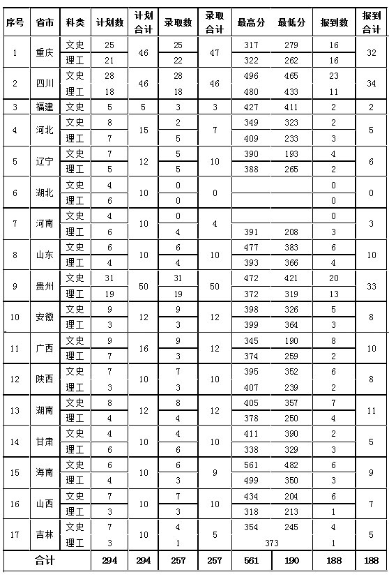 批次 | 學(xué)制 | 專(zhuān)業(yè)名稱(chēng) | 計(jì)劃數(shù) | 錄取數(shù) | 最高分 | 最低分 |