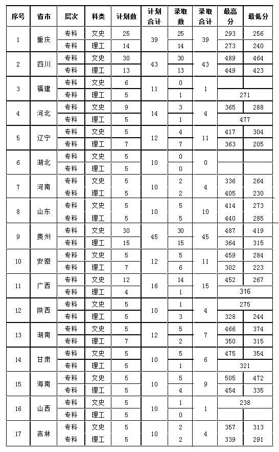 麗江師范高等??茖W(xué)校2014年各省各類錄取分?jǐn)?shù)情況表