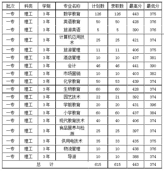 麗江師范高等??茖W(xué)校2014年各省各類錄取分?jǐn)?shù)情況表 一、各省普通專科 1、省外專科文史、理工類 2、云南???/strong> (1)文史類 (2)理工類 (3)藝術(shù)、體育類 藝術(shù)、體育類的錄取原則是:文化及專業(yè)成績(jī)都上線,按照專業(yè)成績(jī)高低擇優(yōu)錄取。以下錄取情況均為考生專業(yè)成績(jī)。 (4)云南三校生