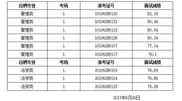 2017年大學(xué)畢業(yè)生招聘面試成績(jī)公示