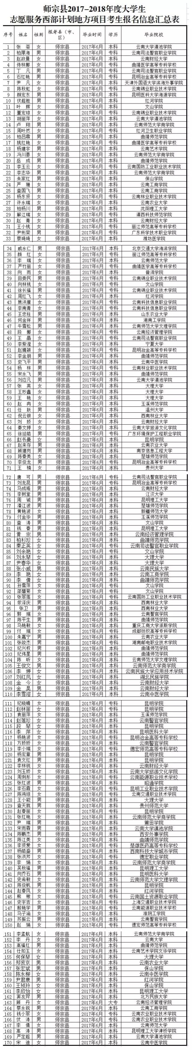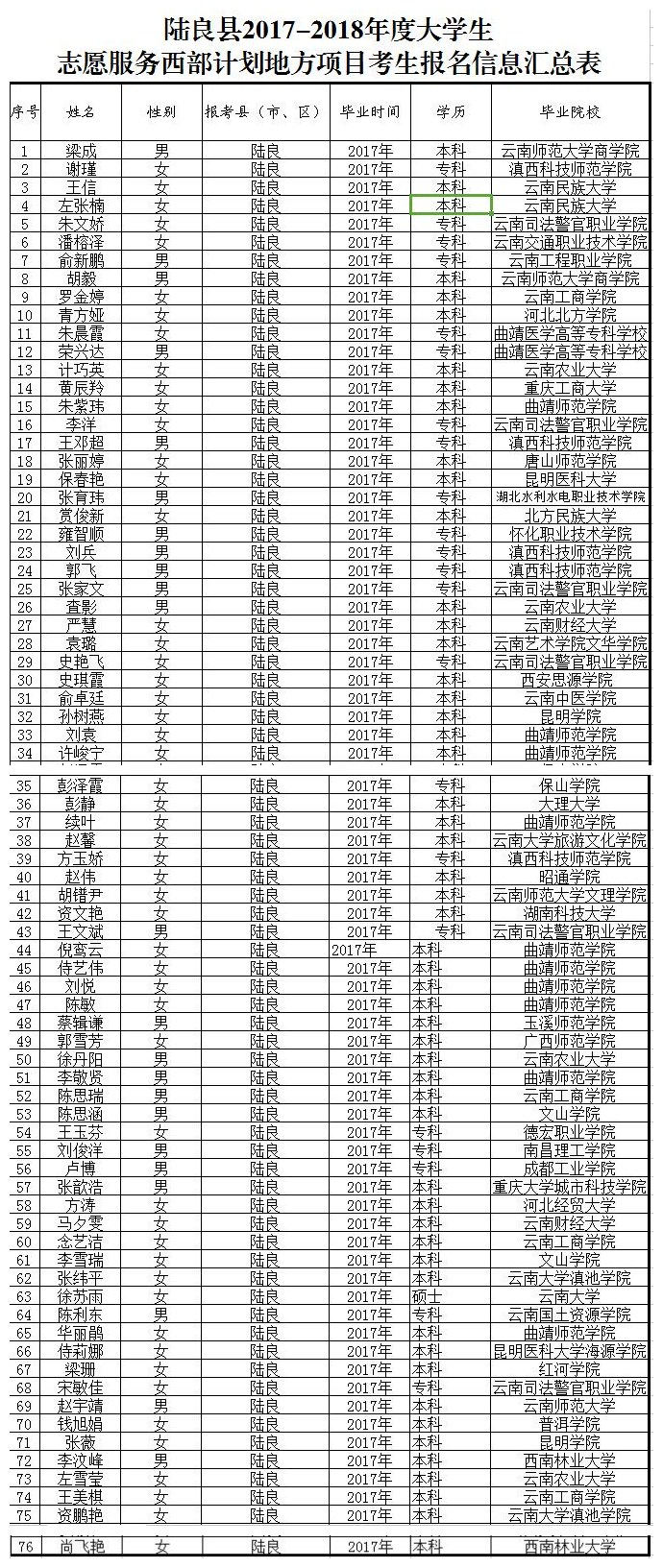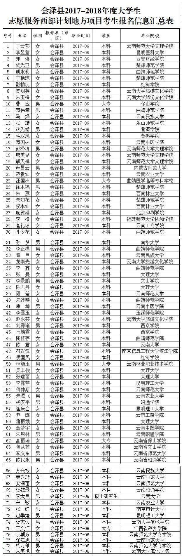 附件:曲靖市2017-2018年度大學(xué)生西部計劃地方項目考生筆試詳細(xì)名單