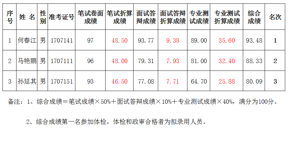 云南民族中學2017年教師招聘綜合成績公示(物理)
