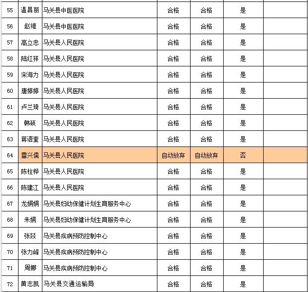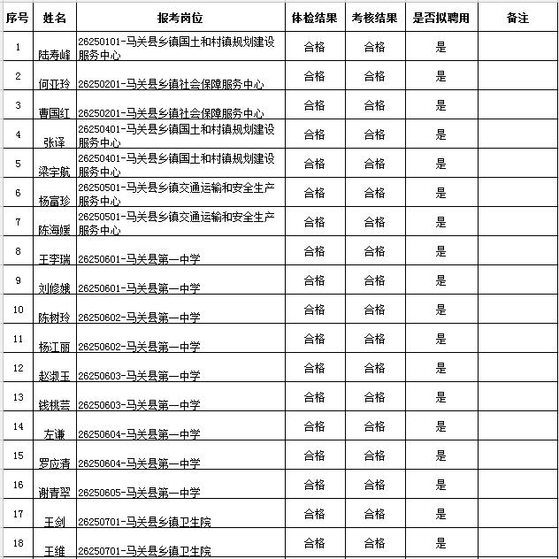 馬關縣2017年度事業(yè)單位公開招聘、緊缺人才招聘體檢、考核結(jié)果