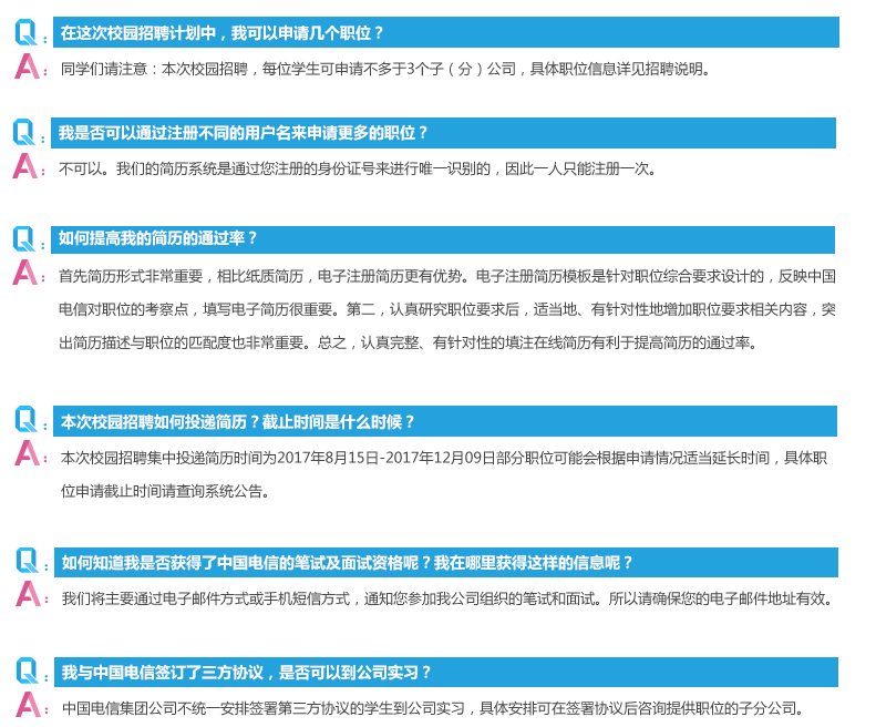 中國(guó)電信集團(tuán)公司2018年校園招聘公告