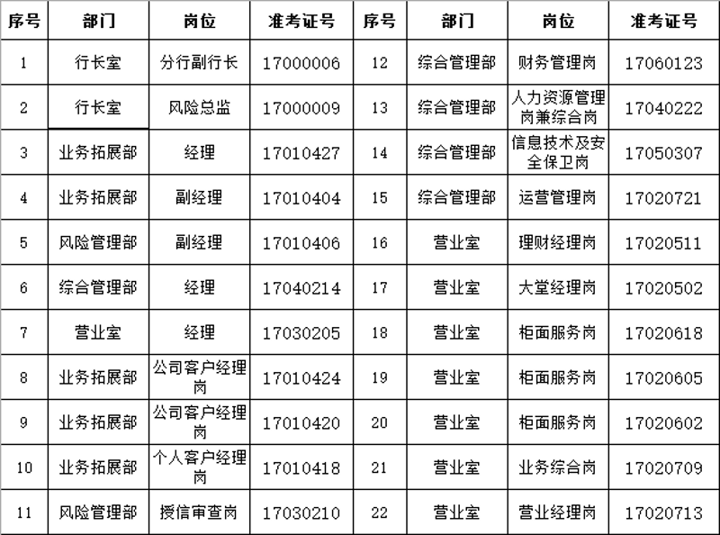 2.因部分參考人員筆面試成績未達到基本招錄要求,業(yè)務拓展部公司客戶經(jīng)理崗招錄職位數(shù)由4位調(diào)整為2位,個人客戶經(jīng)理崗招錄職位數(shù)由2位調(diào)整為1位;