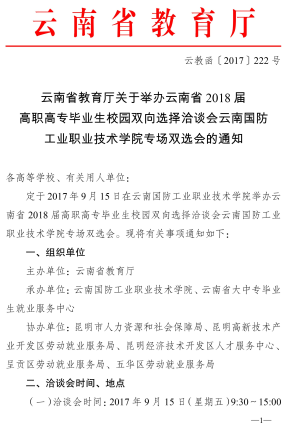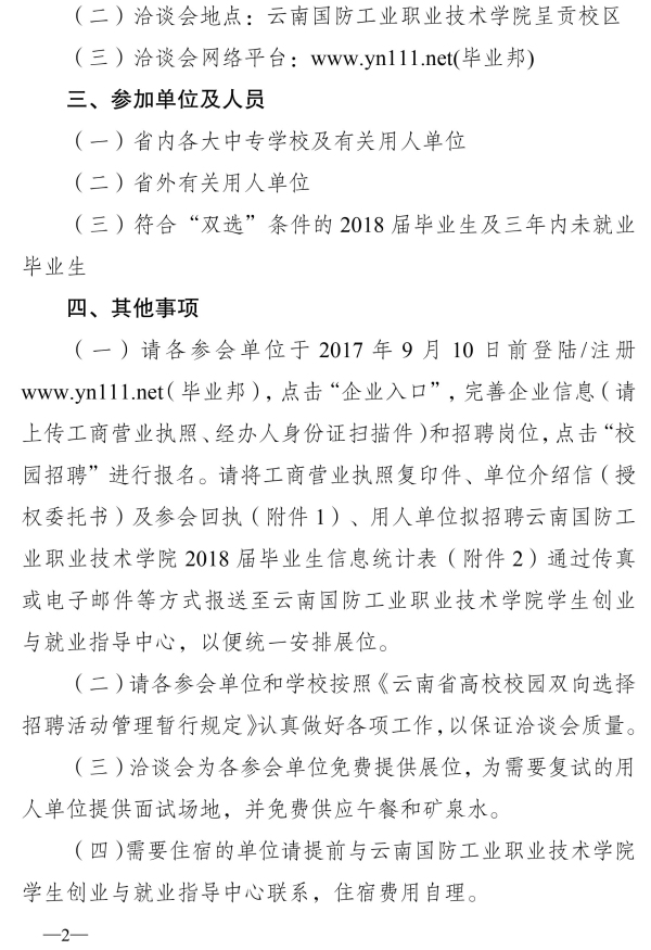 云南開放大學 云南國防工業(yè)職業(yè)技術(shù)學院2018屆校園招聘會