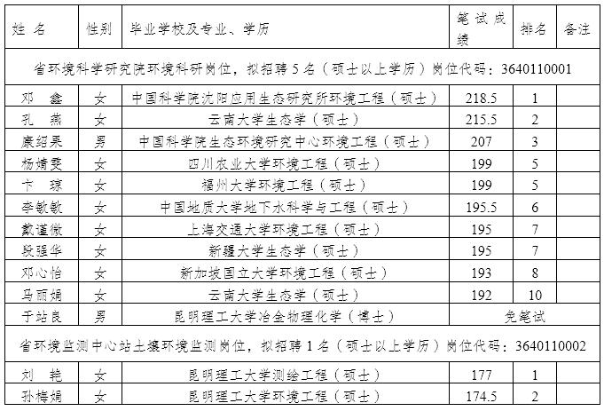 根據(jù)《云南省事業(yè)單位公開招聘工作人員辦法》(云人社發(fā)〔2016〕182號)有關(guān)規(guī)定,現(xiàn)將省環(huán)境保護(hù)廳直屬事業(yè)單位2017年公開招聘工作人員進(jìn)入面試人員公示如下: