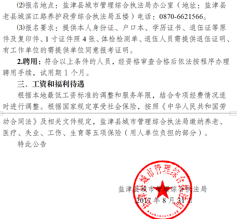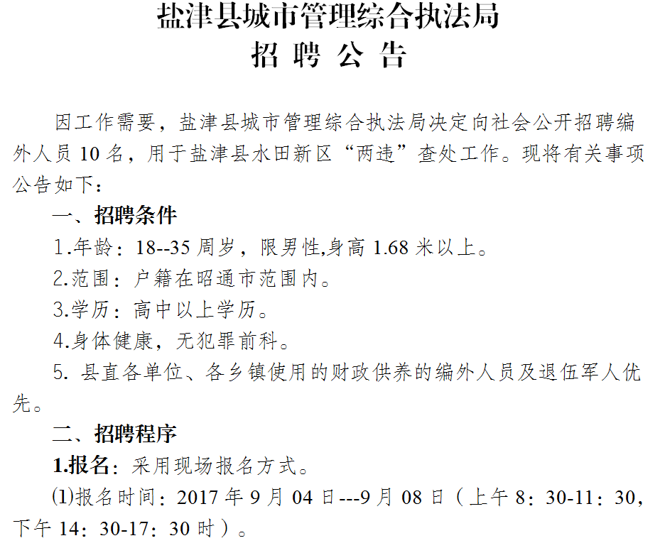 2017年昭通市鹽津城市管理綜合執(zhí)法局招聘公告