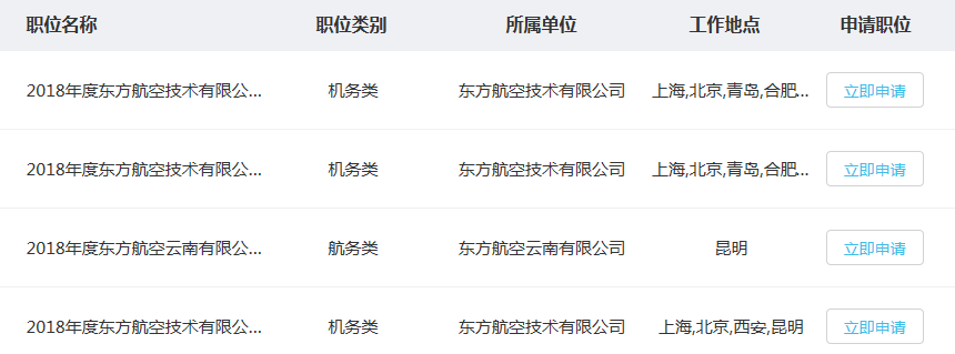2018年度東方航空技術有限公司成熟人員招聘啟事