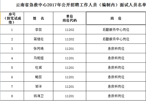 云南省急救中心2017年公開招聘工作人員(編制內(nèi))面試公告