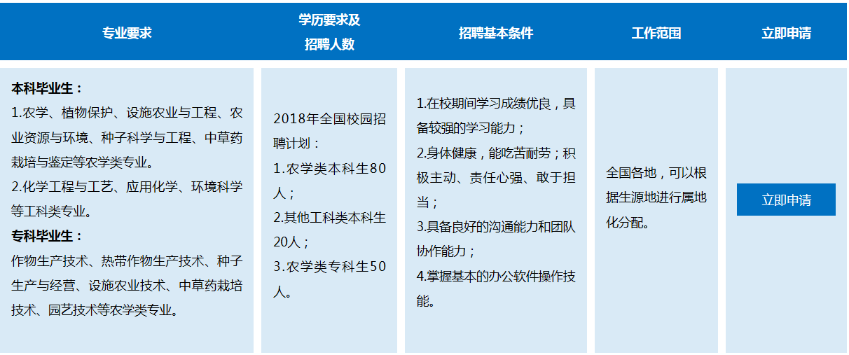 發(fā)展機(jī)會:近年來公司營銷、農(nóng)化人員隊伍呈爆發(fā)式增長,公司倡導(dǎo)“以奮斗者為本,以價值創(chuàng)造者為本”的核心價值理念,給年輕有為的員工提供了大平臺、大發(fā)展的機(jī)會,有能力、有業(yè)績、有擔(dān)當(dāng)?shù)膯T工得到了快速提拔重用。