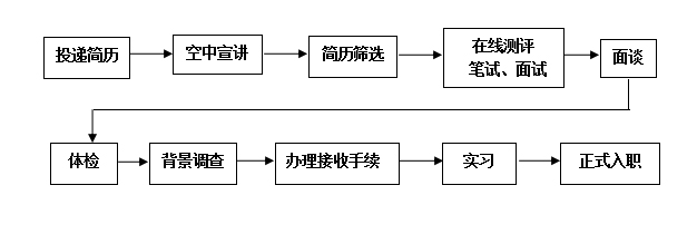 請符合條件的求職者于2017年12月4日前登陸國投校園招聘網(http://campus.51job.com/sdic-2018)投遞簡歷。同時,為方便海外留學生求職,筆試、面試時間暫定在圣誕節(jié)前后,具體日期以實際通知為準。每位求職者應聘崗位不得超過2個。主要經過以下程序: