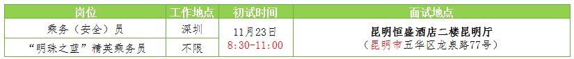 南方航空2017年乘務(wù)(安全)員招聘計(jì)劃(秋季招聘-昆明站)
