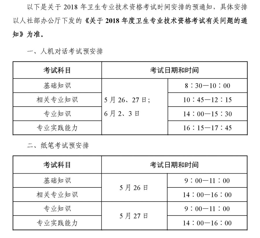 2018年度衛(wèi)生專業(yè)技術(shù)資格考試時(shí)間安排