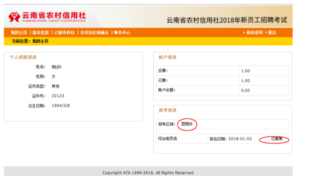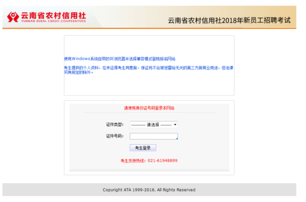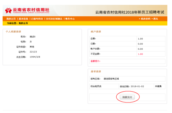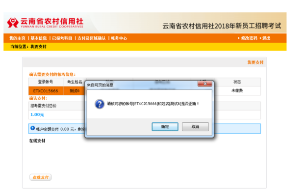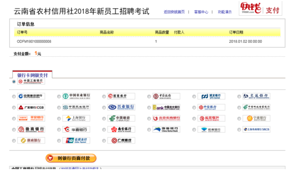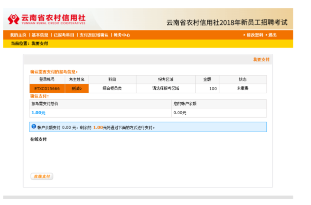 2018年云南省農(nóng)村信用社校園、定向招聘繳費(fèi)入口