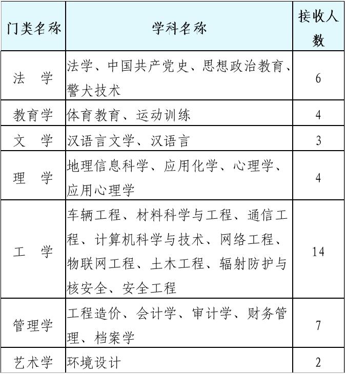 1、院校學(xué)歷:接收對(duì)象必須是參加全國(guó)普通高等學(xué)校招生統(tǒng)一考試錄取的全日制應(yīng)屆本科以上畢業(yè)生(研究生4人,本科生36人),并獲得相應(yīng)的學(xué)位。重點(diǎn)保障接收國(guó)家“985”工程、“211”工程院校畢業(yè)生和部隊(duì)緊缺專(zhuān)業(yè)人才,以接收教育部、公安部直屬院校和省、自治區(qū)、直轄市所屬重點(diǎn)高校畢業(yè)生為輔。根據(jù)有關(guān)規(guī)定,有下列情況之一的不屬于接收范圍: