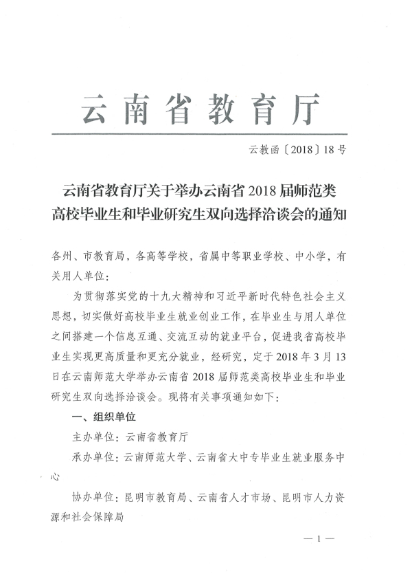 下載附件:云教函〔2018〕18號(hào)_云南省教育廳關(guān)于舉辦云南省2018屆師范類高校畢業(yè)生和畢業(yè)研究生雙向選擇洽談會(huì)的通知_附件.docx