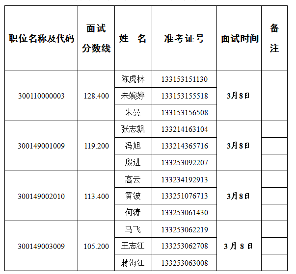 一、面試分?jǐn)?shù)線及進(jìn)入面試人員名單