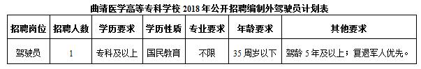 附:曲靖醫(yī)學(xué)高等??茖W(xué)校2018年公開招聘編制外駕駛員計(jì)劃表