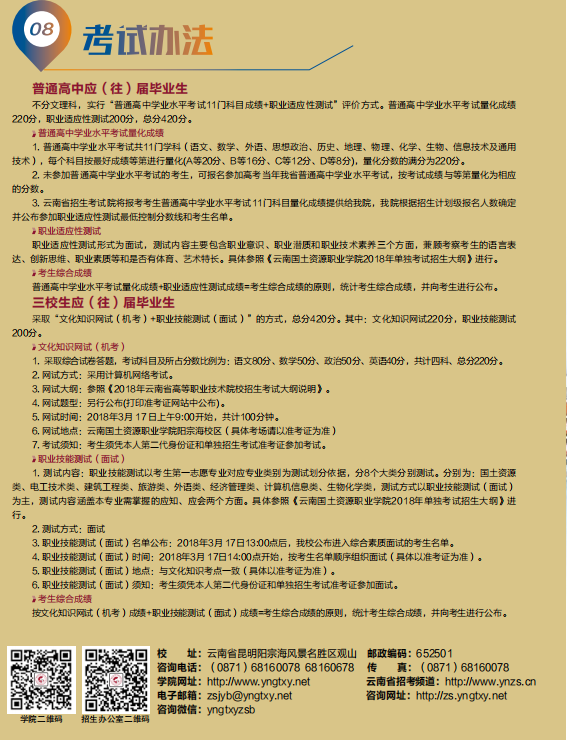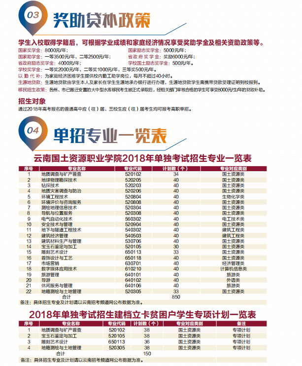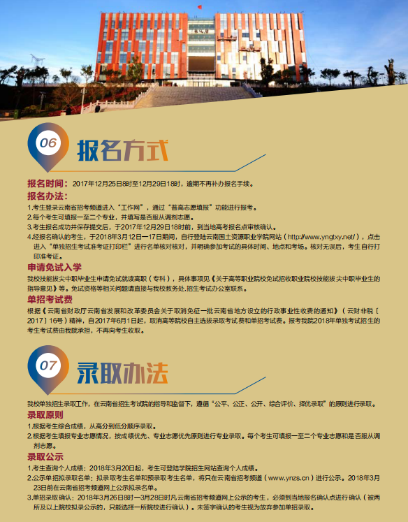 云南國土資源職業(yè)學(xué)院2018年單獨招生考試簡章