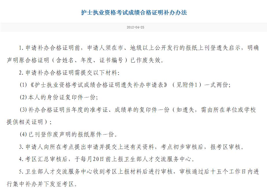 護(hù)士執(zhí)業(yè)資格考試成績(jī)合格證明補(bǔ)辦辦法